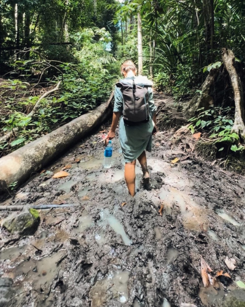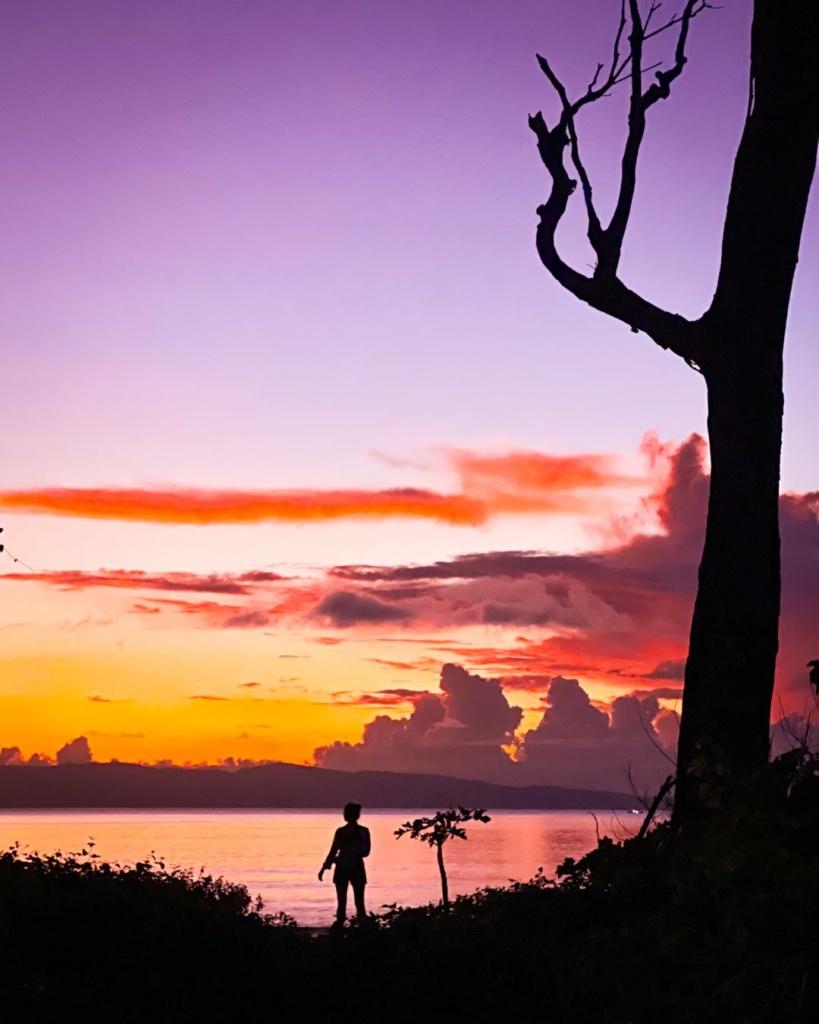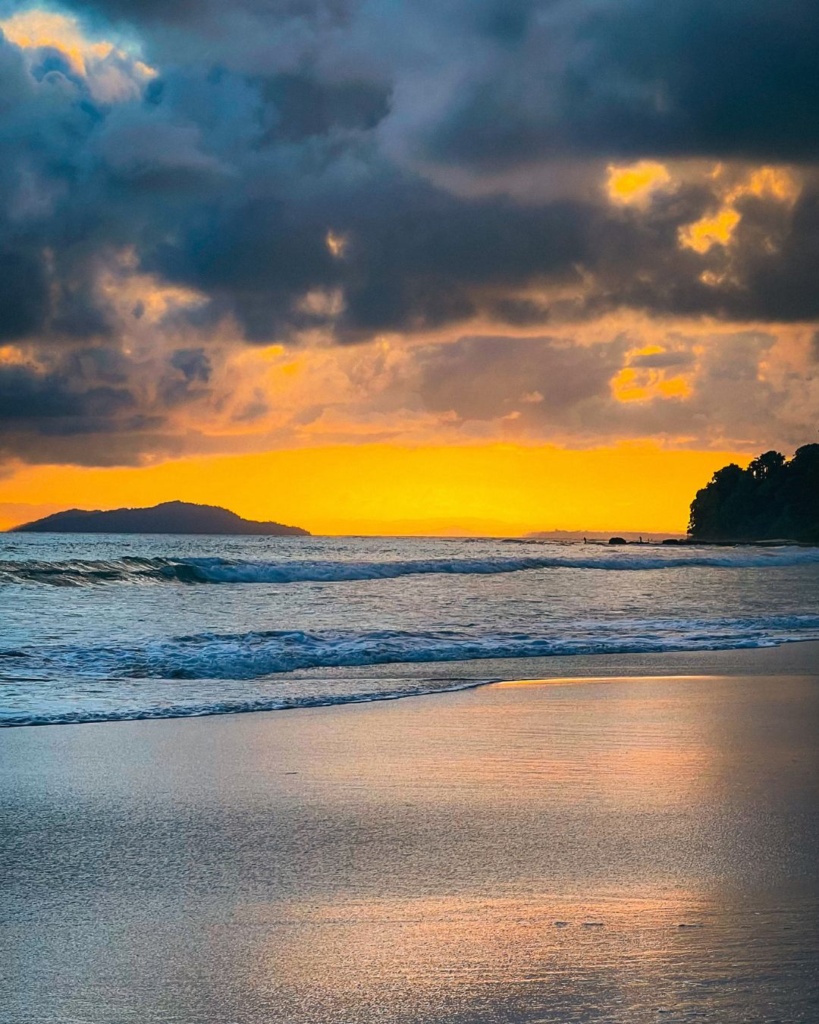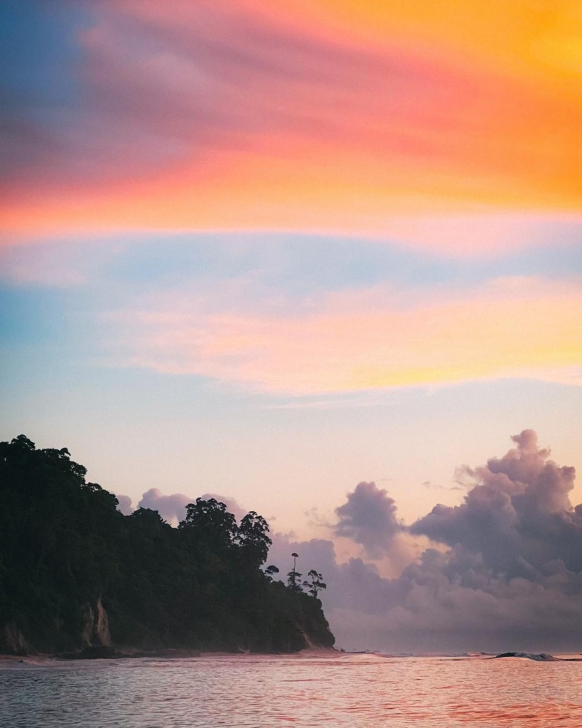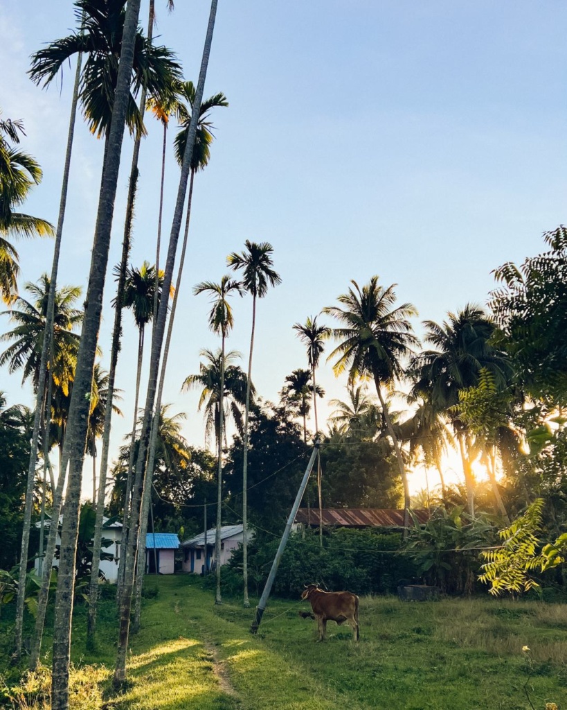 Oma toast välja astudes lõi näkku taas suur pahvakas sooja õhku. Kinnituseks, et oleme endiselt paradiisis. Päikesetõusu kohta jõudmiseks tuli sõita ühest saare otsast teise. Sõitu alustades oli väljas veel väga pime! Tõusu kohta jõudes aga avanes kaunis vaatepilt! Taevas kollakas, mõned pilved seltsiks. Esimese asjana astusin mudamülkasse. Eilsed harjumused on visad kaduma. Hea, et näoli ei käinud.