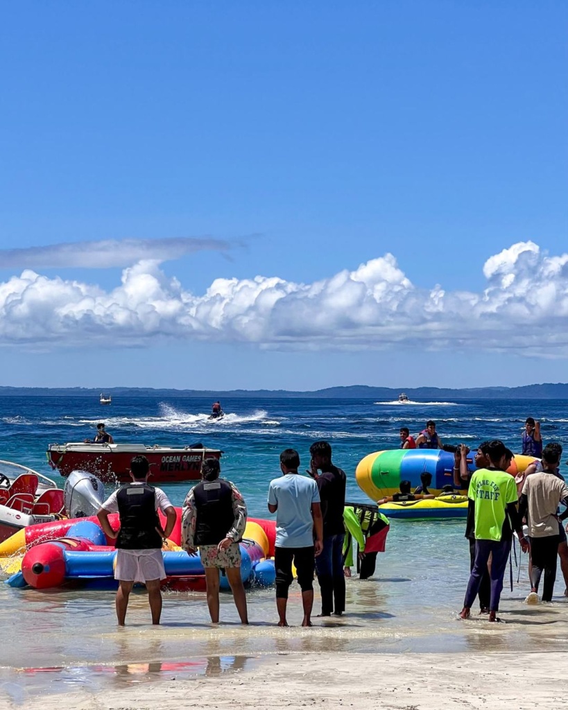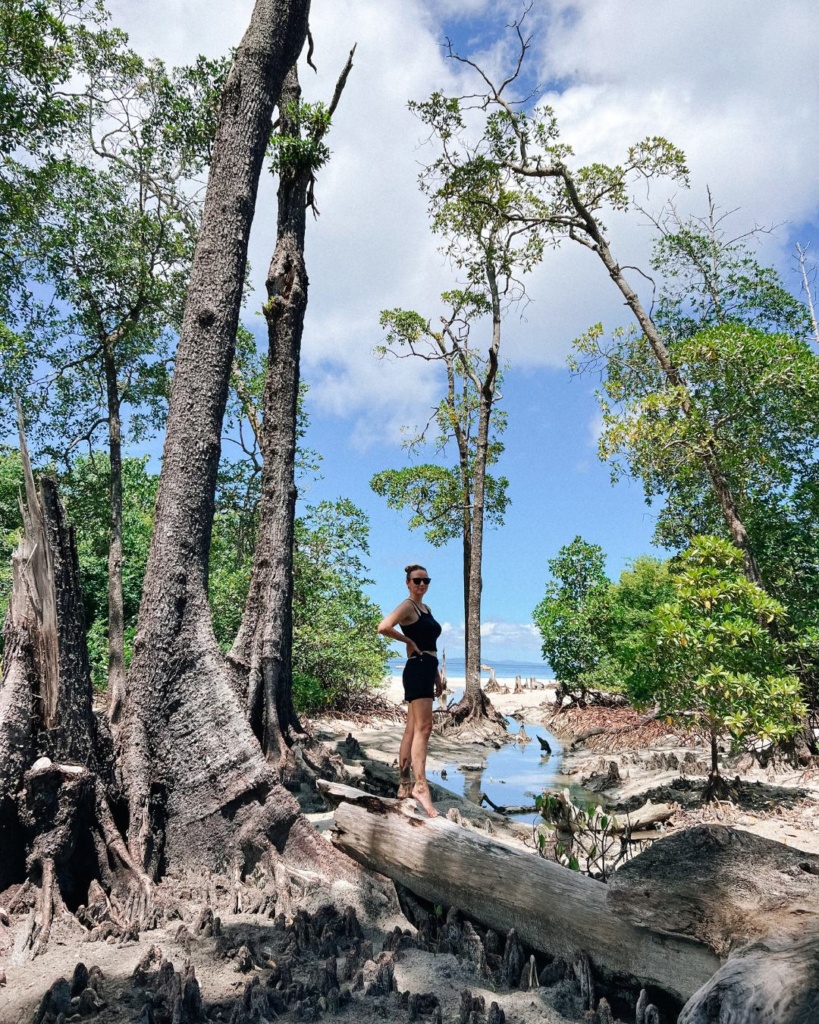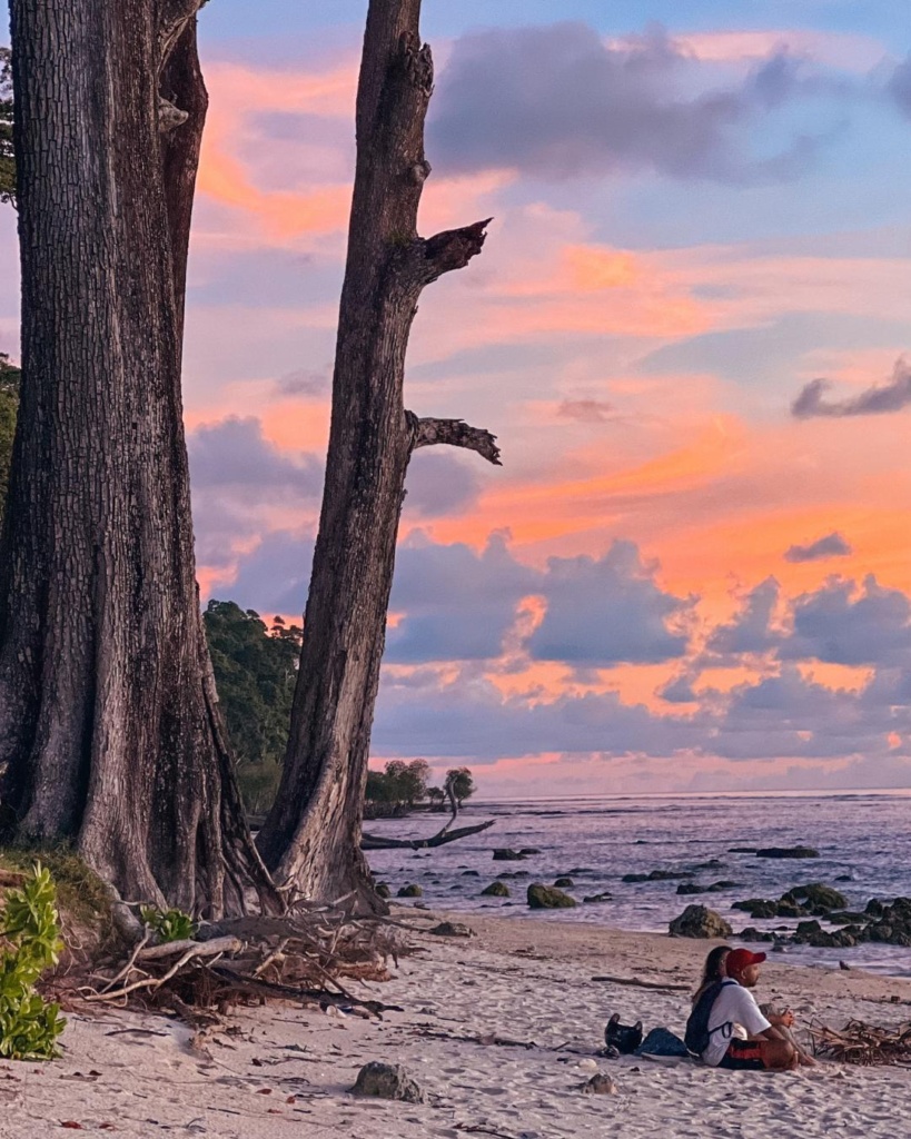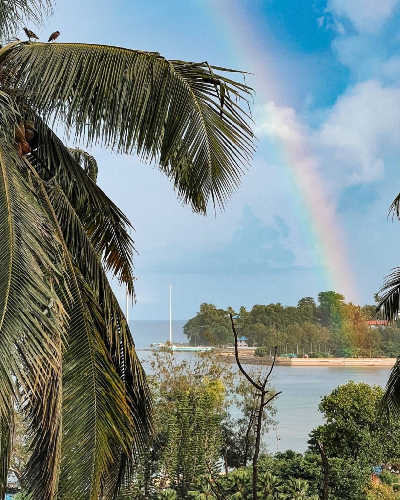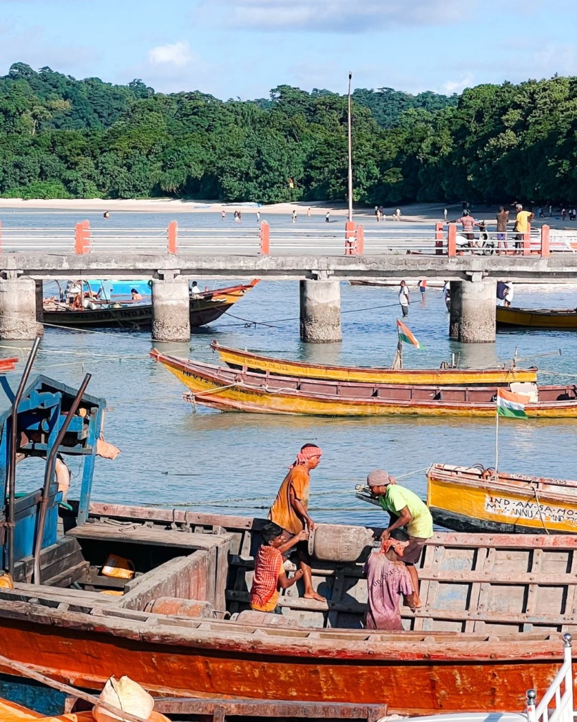 Peagi olime kohal! Meid tervitavad uduvihm ning lämbelt niiske palavus. See oli meie esimene ja viimane vihmasabin, mida siin reisil kogesime. Jalutasime mööda pikka sadamasilda saare poole. Meie ees need samad kaks lille löödud, uhkete kübaratega kohalikku, keda laevajärjekorras silmasime. Nad tulid saarele kahekesi. Võtsid uhke resorti ning tähistavad sünnipäevi. Üks neist saab 30 ja teine 40. Tulevad need alles meeldejäävad juubelid. Andamani saared olid kaua nende to do listis olnud. Nii armas!