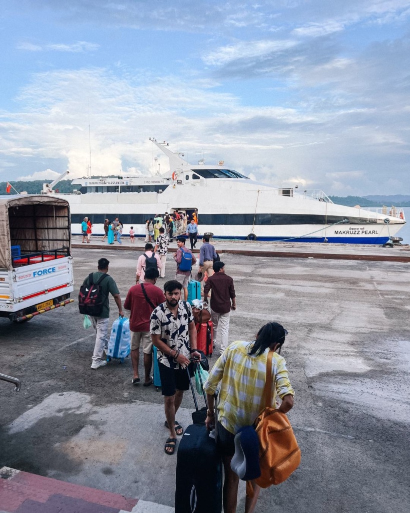 Indias ikka kõik venib. Rahvas peaks juba ammu laevale liikuma, aga kõik seisab. Pikk järjekord kohalikest väga rikastest ning suur hunnik nende kompsudest. Naised olid nii lille löödud, et ilmselt täna öösel sõba silmale ei saanud. Eriti uhked olid kaks meie taga seisvat preilit. Kübarad lausa peas. Seda kohvrite hunnikut vaadates tundus aga, et nii mitmedki plaanivad Andamani saartele kolida. Või siis on neil igale pereliikmele igaks päevaks kolm erinevat kostüümi. Huvitav vaadata, kuidas rahvad ja nende kultuur nii erinevad on. Meie nt pole iialgi selliste kompsudega reisinud. Hetkel mõlemal vaid käsipagasina kaasa võetud seljakotid. Seisame vaikselt kohalike seas ning vaatame uudistavalt ringi. Lõpuks hakkab järjekord liikuma. Tuleb piletit näidata ja end sisse registreerida. Seejärel oma kompsud turvakontrollist läbi lasta. Mõistagi võtab see mõne jaoks terve igaviku! Saame lõpuks laevale ning leiame oma kohad. Seda muidugi pisikese arusaamatuse saatel. Üks kohalik naine on ridade numbrid sassi ajanud ning on surmkindel, et peaks kogu oma perega meie kohtadel istuma. Ilmselt saab selle suure elevuse kaela kirjutada.
