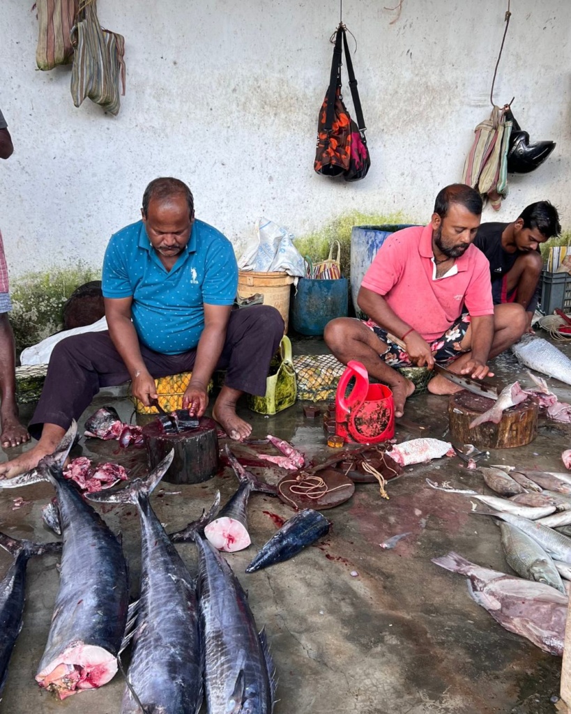 Päikesetõus vaadatud, sõidutas meie tuktuki juht meid tagasi keskusesse. Kogu saar oli ärkamas. Ühe varjualuse all käis vilgas kalasaadustega kauplemine. Mehed olid ilmselt värske saagiga merelt tulnud ning kauplesid nüüd püütuga. Kala poolitamine ning mingil määral ka puhastamine käis samuti seal samas katuse all. Liikusime vaikselt hotelli poole tagasi.