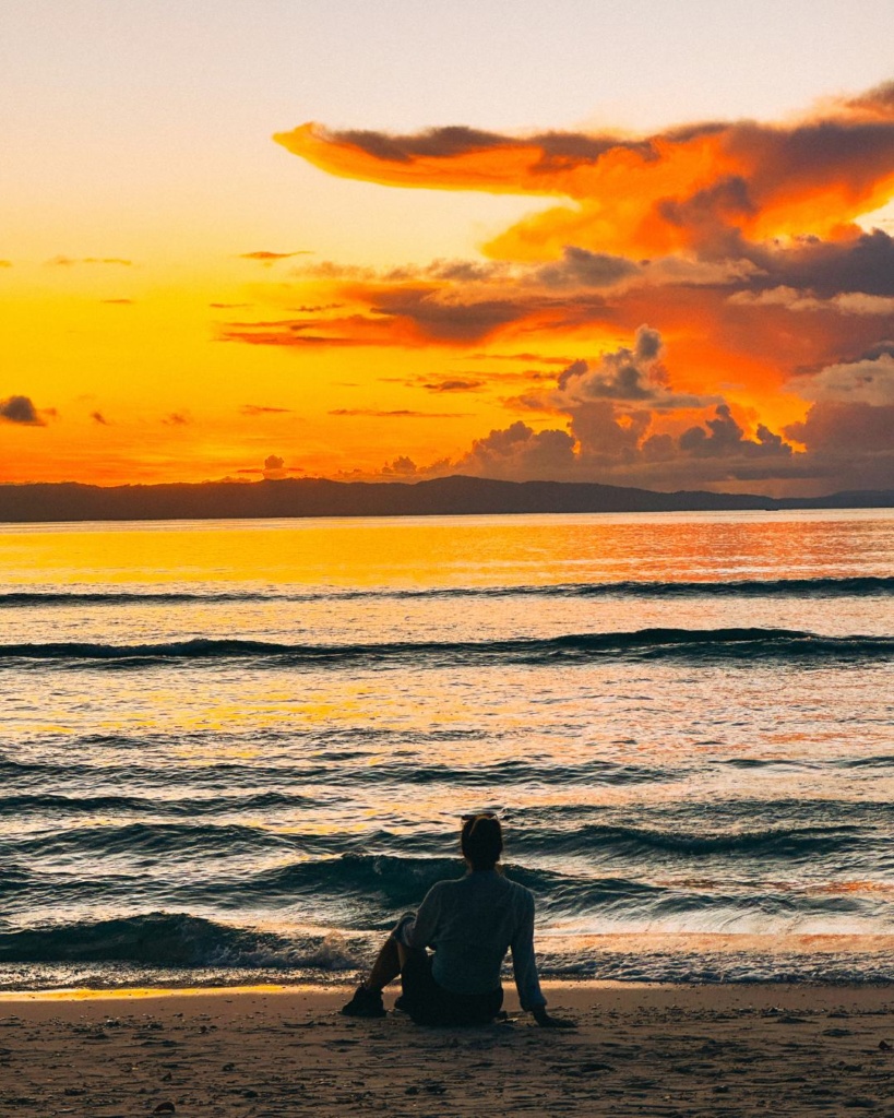 Loojang oli tõesti erakordne! Terve taevas oranžiks värvunud. Sajad turistid seda värvidemängu rannaliival imetlemas. Meie nende seal. Siiani maagiliseim loojang, mida siin saartel näinud oleme! Loojangu lõpu poole tuli sisse ka lillakaid toone. Imeilus!