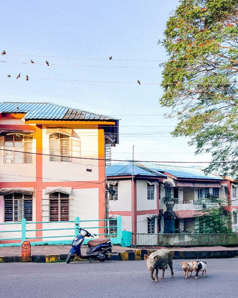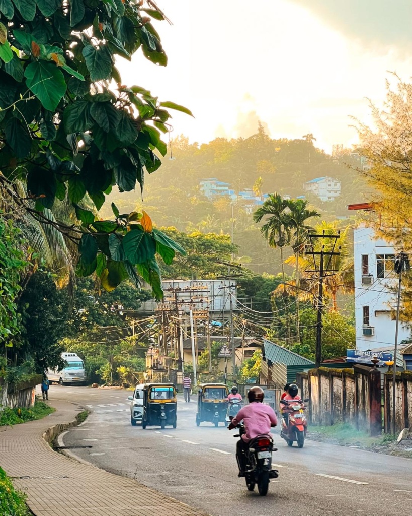 Lennujaamast meie hotelli oli 3km. Tundus ideaalne viis linnaga tutvust teha! Esimesena hakkasid silma kõnniteed, et inimesed kannavad motadega sõites kiivrit ning et tänavad on üsna puhtad! Prügi vedeles minimaalselt! See oli tõesti midagi väga ootamatut. Varanasis karastununa olime valmis prügimereks ning lehmakarjaks. Seda siit aga eest ei leidnud. Sain tehtud ka esimese kohtumise kohaliku, päris suure sisalikuga. Jooksis mulle vastu jalga. Pool saart sai teate, et oleme jõudnud Andamani!