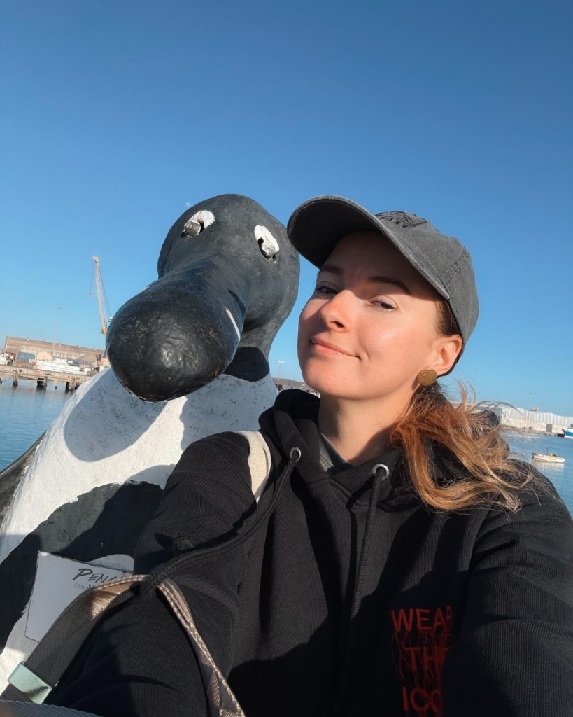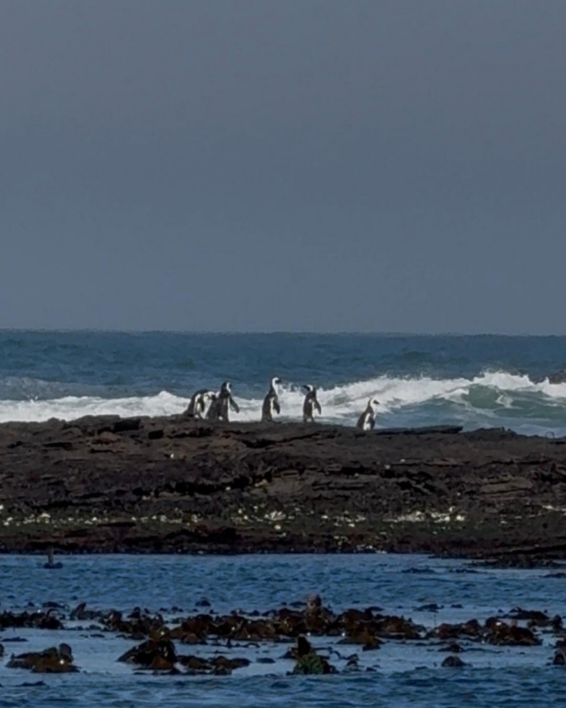 Tegin sadamas kiirelt ühe suure pingviinikujuga pilti ka. Juhuks, kui see peaks ainsaks pinguks jääma, keda täna kohata õnnestub! Astusime pardale ja sõit võis alata! Olime jõudnud veidi maad minna, kui juba nägime vaala! Tegi veepinnal oma majesteetliku sabaga suure plärtsu. Wow. Ta saba oli kindlasti minust suurem! Lisaks ujus meie ümber aeg-ajalt ka mitmeid hülgeid ning delfiine. Nii lahe! Pingviinid pidavat siin üsna mitmel saarel elama. Üheks nendest näiteks Halifax. Inimesi sinna muidugi ei lubata. Saab paadiga kaldalt vaadata. Kunagi olevat Halifaxi saarel elanud rohkem kui 6000 pingviini. Terve saar oli lindudega täidetud. Siis aga tuli linnugripp ning pingviinid said suuresti hukka. Praegu elab saarel 780 pingviini. Ma ei tea, kuidas neid loetakse, aga peagi loodetakse nende tõusu 900ni. Pingud söövad sardiine. Nendegi arvukus oli vahepeal vähenenud. Nüüd on aga taas tõusnud ning pingviinidel on hea kodu lähedal meres toiduretkel käia.