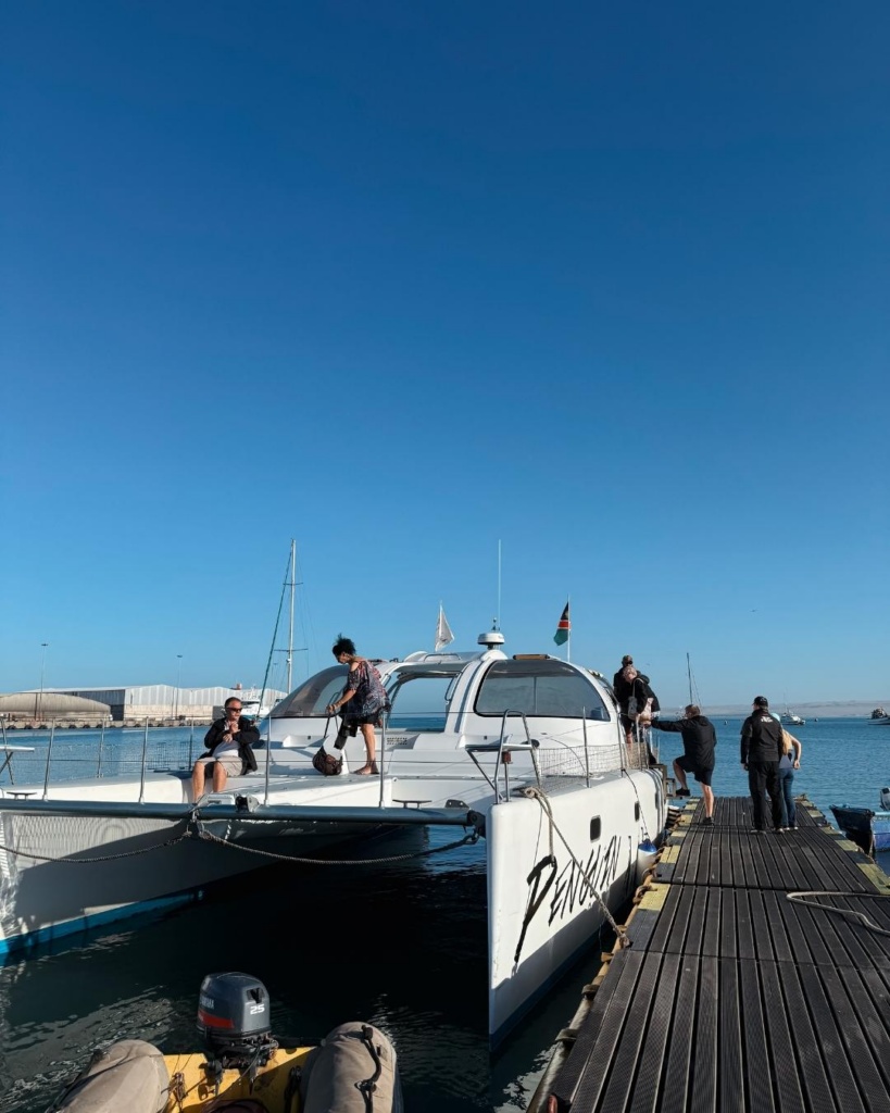 Kui uurisin, mis siin toredat teha võiks, tuli mitmest kohast välja paadisõit koos pingviinide vaatamisega. Me kunagi Kertuga käisime Aafrikas paadiga sõitmas, delfiine vaatamas. Ei lõppenud hästi. Lõpuks olime koos paadiga ümber ning delfiinid vaatasid hoopis meid. Praegu aga on paadi asemel katamaraan. See tundub väheke turvalisem. Otsustasin Aafrikale ja paadisõidule uue võimaluse anda. Start kell 8 hommikul Lüderitzi sadamast.