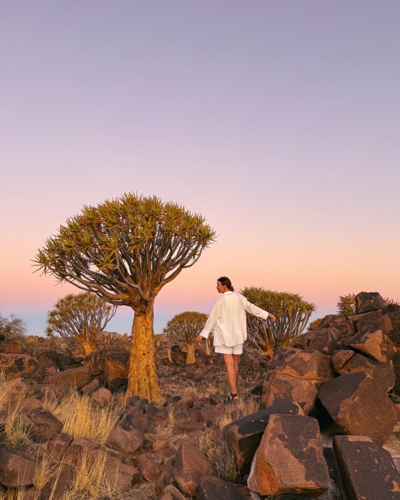 Ja nüüd algas õhtu kõige eepilisem hetk! Päikeseloojag. See on ebamaine maagia. Värvidemäng. Wow, mis paradiisis me peatume! Ühelt poolt kollakas-oranžikas taevas, teisalt lillakas-roosakas. Kõige selle keskel sajad noolepuud seda kõike nautimas. Sa lihtsalt seisad selle eepilise hetke sees ja mõtled, et kas see, mida sa näed, on päris, või on sinu unenäod nii visuaalseteks muinasjuttudeks muutunud. Näpistad end ning siis saad aru, et oled reaalsuses. Elad just selles samas hetkes. Jalutasime päiekseloojangu saatel noolepuude metsas ning imetlesime ennast ümbritsevat värvidemängu. Õhk oli nii soe ja mõnus ning iga hetk kui kaunis muinasjutt.