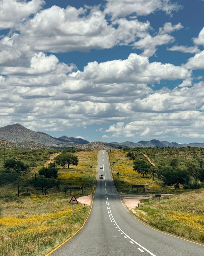 Vaated olid aga kaunid. Taas lõputuna näiv pikk tee jooksmas. Kahel pool teed kollakas rohi, eemal mõlemal pool madalad mäed. Jõudsime Lüderitzi. Tegu on pisikese linnaga Namiibia läänekaldal.