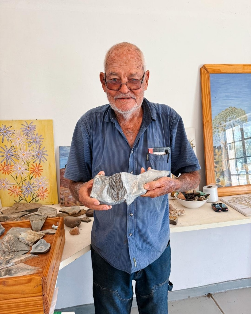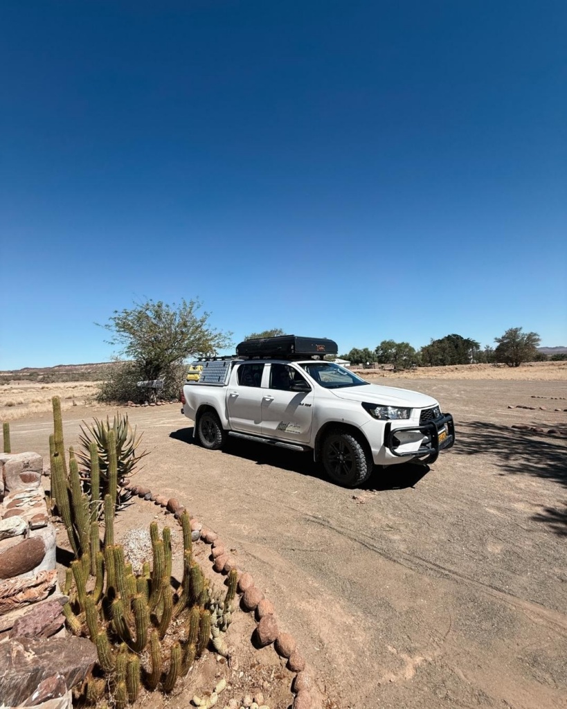 Lahkume homme vara ning tahaksime kindlasti täna kõik arved ära klaarida. Sõitsime tagasi infopunkti. Meiega saabus sinna samal ajal ka aastakümneid näinud valge kastiga maastur. Koer kõrval istmel lõõtsutamas. Välja astus eakas meesterahvas. Tervitas reipalt ning küsis, kust kaugelt tuleme. Tema on Giel. Kohalik mees, kes Namiibias sündinud ja kasvanud. Gieli poeg tegeleb muidu kämpingu ja ööbimistega, Giel on niisama abis ja teeb erinevaid tuure. Siinsel loodusel on palju huvitavat pakkuda ning Gieli teadmised on suured.