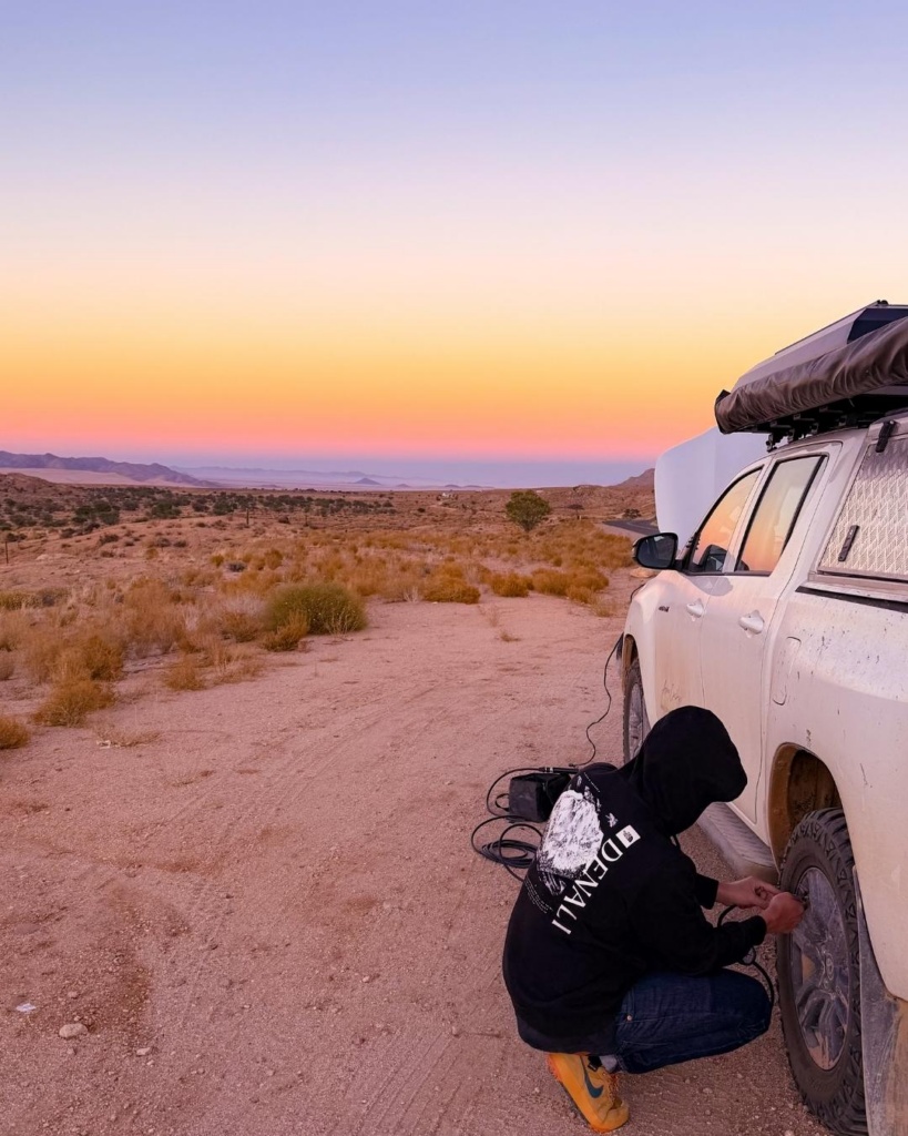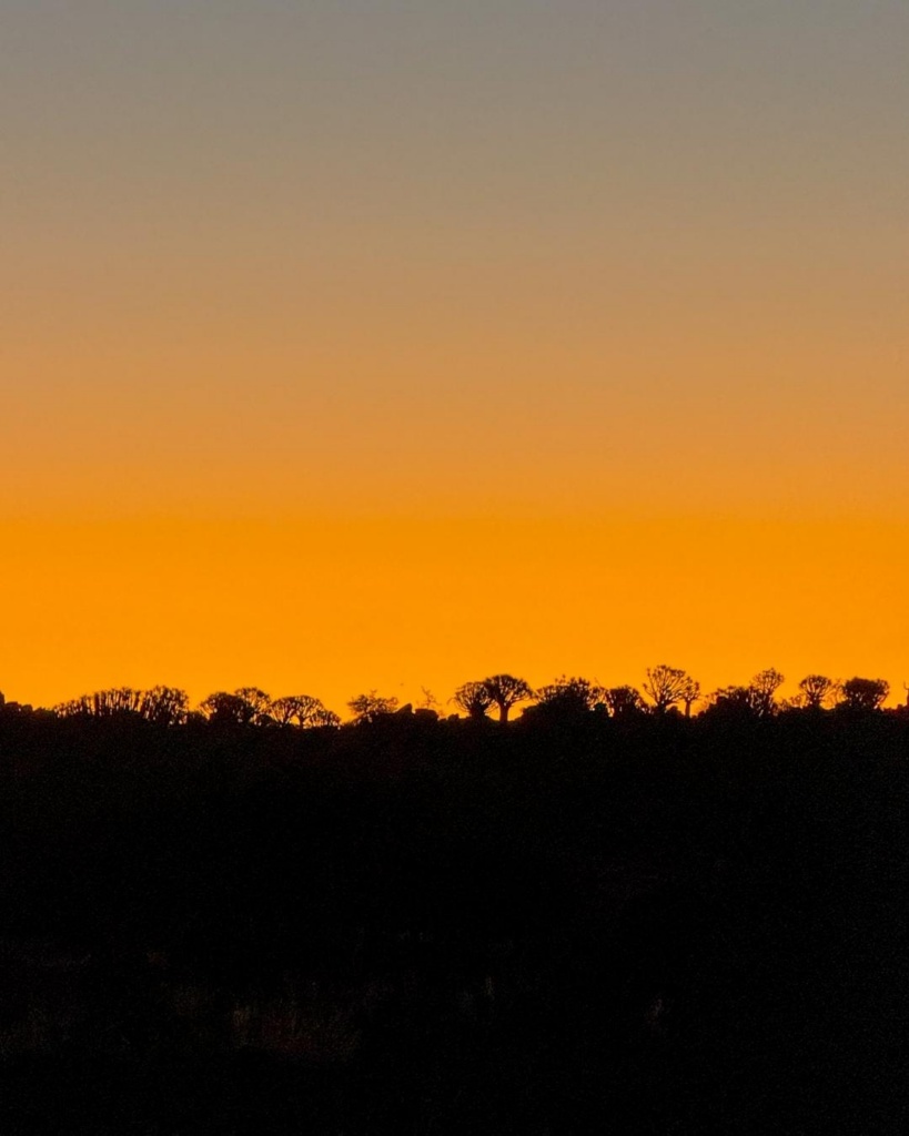 Namiibias on populaarne selline tegevus nagu sundowner ehk päikeseloojangupidu. See tähendab, et võtad meelepärase joogi, ühe hetke ning imetled loojuvat päikest ning lõppevat päeva. Aeglustus ning võimalus hinnata looduse ilu. Istusime oma matkatoolides ning hoidsime pilgud peagi loojuva päikese suunas. Meie viimane öö siin Namiibia tähistaeva all, autokatusel magades. Kui imeline see kõik on olnud!