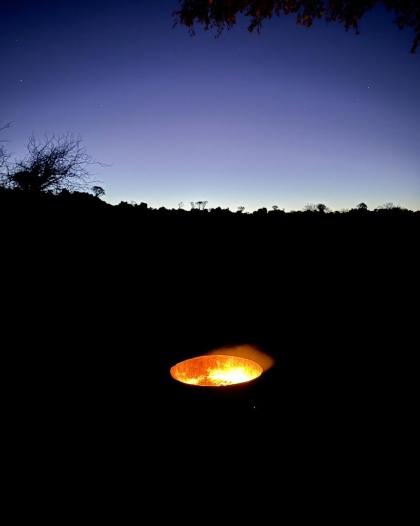 Kui päikeseloojangu jalutuskäigult tagasi jõudsime, hakkasime kibekiirelt õhtusööki valmistama. Õues oli juba üsna hämar ning kogu varustus oli vaja kiirelt üles seada. Tegime viimastest kaasas olnud puudest lõkketünni tule ning ootasime söögi valmimist. Viimane õhtusöök siin tähistaeva all! Mida pimedamaks läks, seda rohkem ilmus taevas nähtavale ka tähti. Lõpuks olime täieliku tähtede paradiisi tunnistajateks. Ma ei ole eluski nii palju ja nii eredaid tähti korraga näinud. Nagu oleks iga taevas olev täheke andnud oma parima, et kõige eredamalt särada. Lihtsalt lösutasime oma matkatoolides, hoidsime pilgud taevalaotusel ning imetlesime hetke, milles olime. Hiiglaslik Aafrika tähistaevas, oma täies hiilguses, siin noolepuu metsas. Milline maaliline viimane telkimine Namiibias!