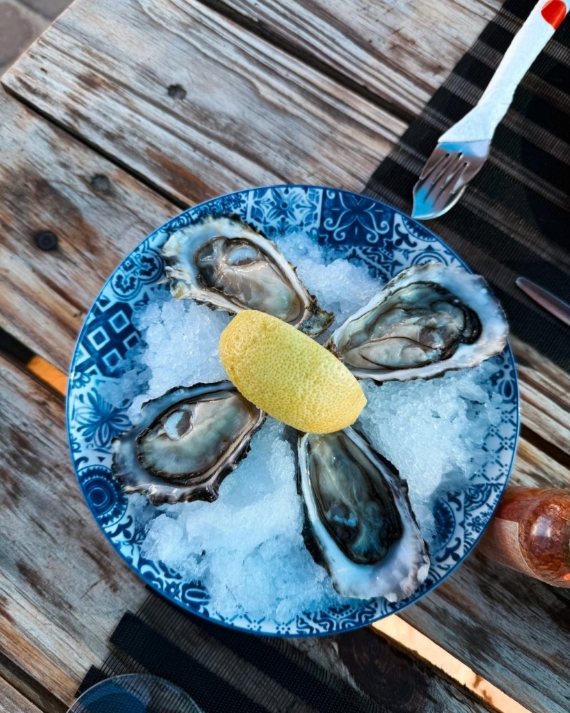 Jääme täna Lüderitzi ööbima. Otsustasime enne oma ööbimiskohta minekut õhtuse kehakinnituse teha. Kuna meil on toitu alles täpselt kahe hommikusöögi ja ühe õhtusöögi jagu ning rohkem midagi juurde osta ei taha, siis sööme täna väljas. Leidsime ühe mõnusa kohaliku söögikoha, mereandidest inspireeritud. Hinnad samuti väga head. Klaas valget veini maksis näiteks 3,31 eurot. Ühe austri sai 1,41 euro eest. Suure ja tugeva prae sai aga umbes 13 euro eest. Söögielamus oivaline!