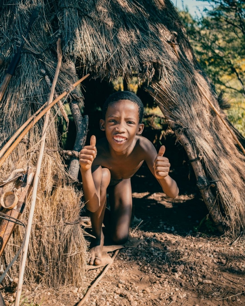 Uus päev toob viimase Namiibia seikluse! Kuna meil läheb lend täna alles kella 18 paiku õhtul, siis plaanime päeva esimese poole meeldejäävalt sisustada. Tahame näha, kuidas inimesed siin kunagi päriselt elasid. Ning kuidas ka Namiibia põhja pool kohati veel tänaseni elavad. Lähme külla kohalikele, keda kutsutakse nii Bushmenid kui ka San peoples. Sanid ehk bušmanid on Lõuna-Aafrika põlisrahvaste liikmed. Praeguseks on neid kokku umbes 100 000 ning ~30 000 neist elab Namiibias. Kütid-korilased Sanid olevat üks vanimaid kultuure planeedil Maal ning arvatakse, et nad põlvnevad Botswana (Namiibia naaberriik) ja Lõuna-Aafrika esimestest elanikest.